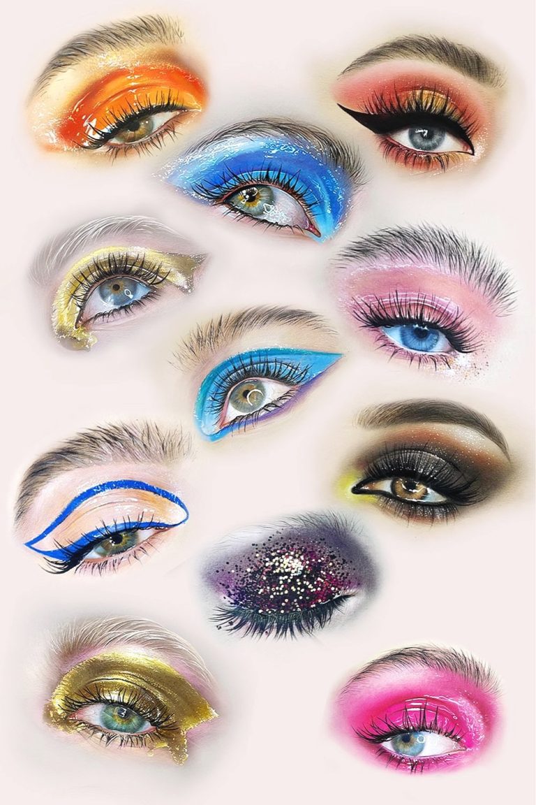 On the current day’s basic face charts, eyes have a touch of realism but are not detailed. However, when designing eye makeup looks, Liza Kondrevich takes things to the highest level of hyperrealism. In her course – Makeup Designer Academy™ Online Face Chart Course – she’s teaching how to draw realistic eyes and makeup in an easy-to-follow step-by-step way. from color picking and matching to imitating substantial structures like thick golden eyeshadow and foils.